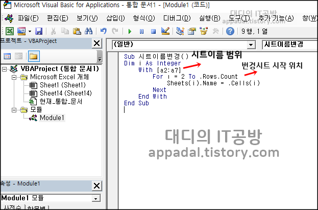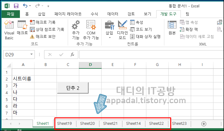 안녕하세요. 대디의 IT공방입니다. 엑셀에서 작업을 하다 보면 시트 이름을 변경할 때 아래 시트를 클릭해서 시트 이름을 변경하면 되는데요. 엑셀에서 시트 이름을 변경해야 할 시트가 20개 정도 넘어간다면 이름을 변경하는 것도 정말 일이 될 것입니다.