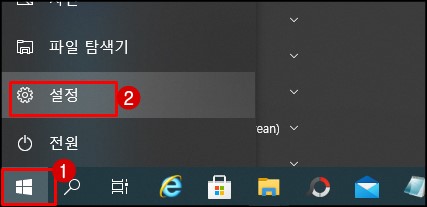 작업표시줄에 잇는 윈도우 아이콘을 클릭하고 설정 버튼을 클릭해 줍니다.