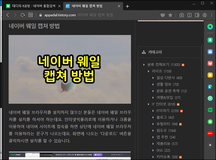 네이버 웨일 다크모드 설정하는 방법