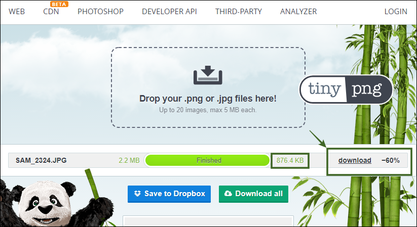 사진을 옮겨 놓으면 바로 사진 용량 줄이기를 바로 시작하는데요. 작업이 끝나면 왼쪽에는 원본 사진의 용량을 나타내고 오른쪽에는 줄어든 사진의 용량이 나타납니다. 그리고 그 옆에 있는 download 버튼을 클릭하여 사진을 내 컴퓨터에 저장할 수 있습니다.