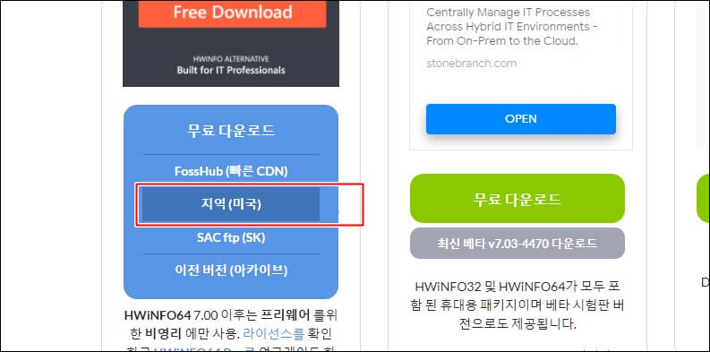 2. 마우스를 올려놓으면 지역(미국)이 나타납니다. 이 부분을 클릭하면 설치 파일을 다운로드할 수 있습니다.