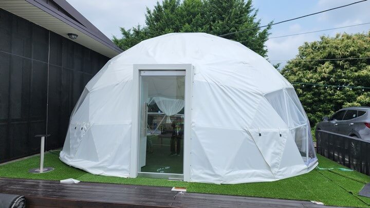야외에 돔 모양의 시설이 있어서 궁금했는데 혹시나 다른 분들이 자리가 없을 경우나 미리 오셔서 기다리셔야 할 경우를 위해서 만들어 놓으셨다고 하더라고요.