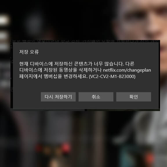 넷플릭스 저장 오류(VC2-CV2-M1-B23000) 해결 방법