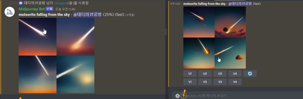 얼마 전 그림 공모전에서 ai가 그린 그림이 공모전에서 1위를 했다는 소식을 접하신 분들이 많으실 텐데요. 미드저니는 영어로 텍스트를 입력하면 ai가 그림을 그려주는 형식입니다. 저도 궁금해서 디스코드에 가입한 다음 텍스트를 입력하여 AI가 어떤 그림을 그려주는지 확인해 봤습니다.