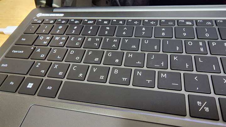 터치 패드 부분이 정말 넓습니다. 그래서 조금 불편하지 않을까 생각했었는데요. 간단하게 문서를 작성해 보았는데 패드로 인해서 불편함은 느끼지 못했습니다. 그리고 텐키가 있어서 정 가운데에 위치해 있지 않고 왼쪽에 조금 치우쳐 있습니다.