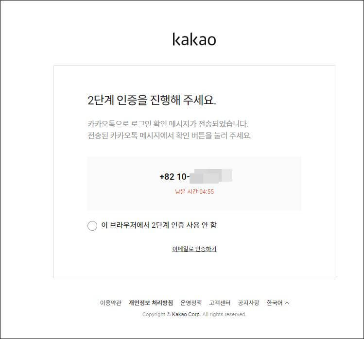 4. 크롬 브라우저 창을 모두 닫은 다음 다시 실행합니다. 다시 실행한 후 티스토리 로그인을 클릭하면 아래 처럼 인증 메시지가 나타날 것입니다. 인증을 한 후에는 다시 예전처럼 티스토리 로그인 오류 없이 사용할 수 있습니다.