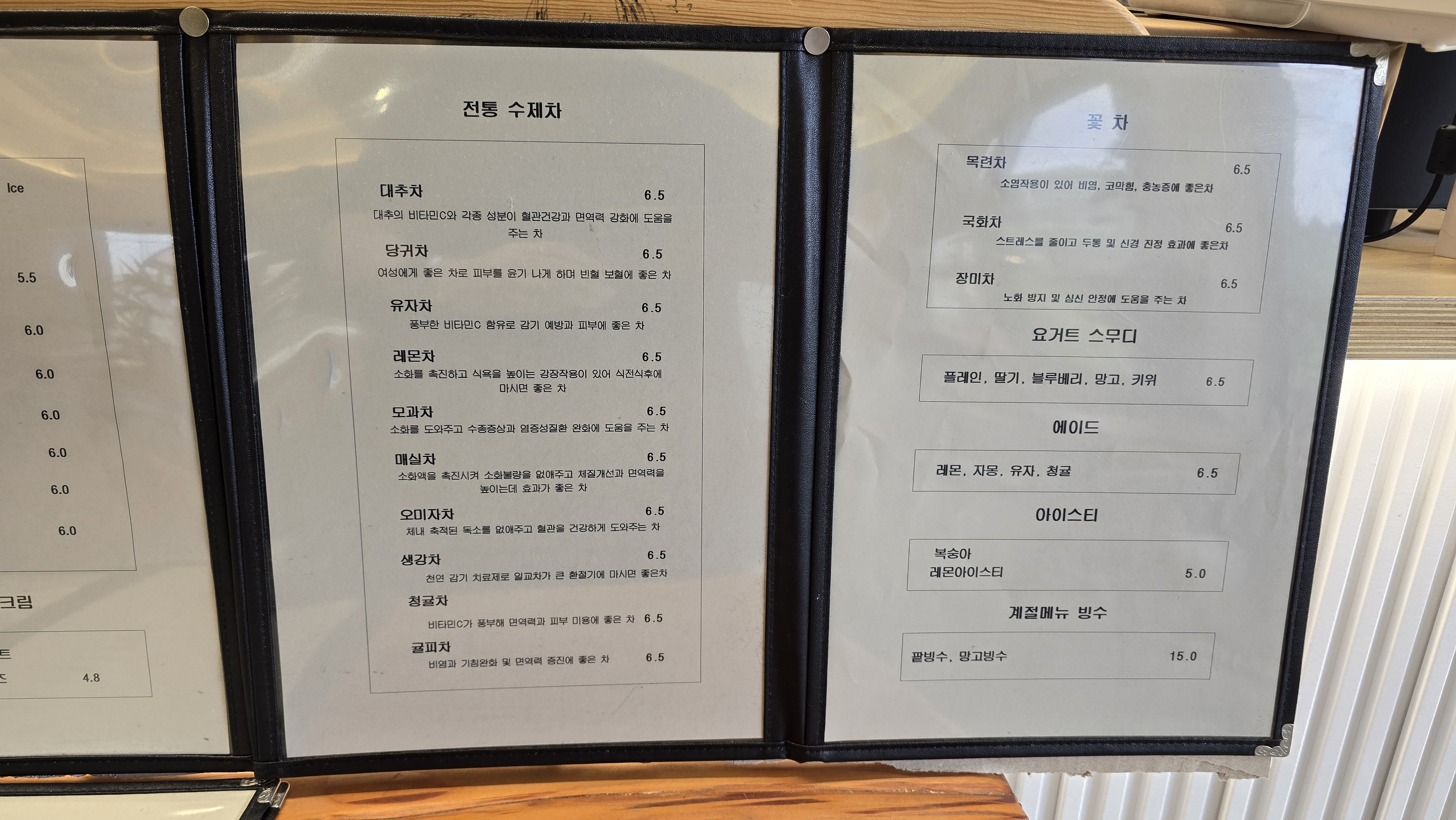 전통 수제차와 꽃차 커피류도 판매를 하고 있어서 취향대로 선택하시면 될 것 같습니다.
