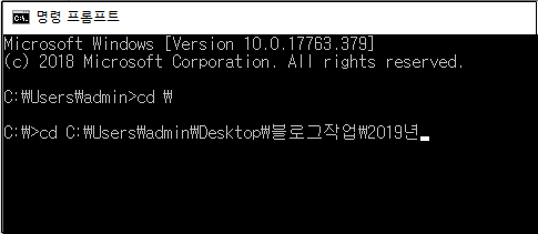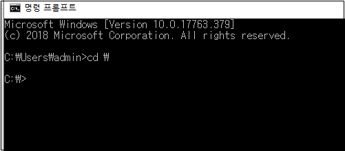시작하는 위치는 모두 다르기 때문에 명령어 "cd \" 입력하여 C드라이브로 이동합니다. 여기서 cd는 경로를 이동할 때 쓰는 명령어입니다.