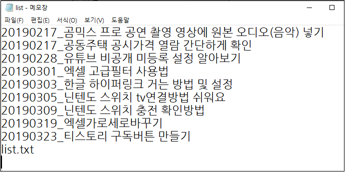 폴더 파일 이름 목록 리스트 만들기